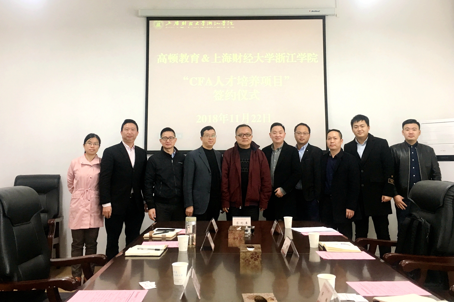 11月21日上午,学院与上海高顿教育培训有限公司“CFA人才培养项目”合作协议签约仪式在学院28幢518会议室举行。学院院长马洪,学院党委委员、副院长曾惠成,金融系系主任李健,以及上海高顿教育培训有限公司高校事业部全国合作总监舒畅,高顿教育杭州分校负责人陈旭等嘉宾出席了签约仪式。曾惠成和舒畅分别作为双方代表,签订了“CFA人才培养项目”合作协议。双方还对今后的进一步深度合作进行了探讨。