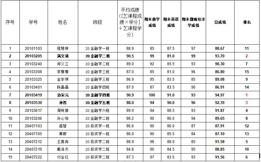 根据学院教务处《关于做好2021年选拔优秀学生进入校本部交流学习的通知》的要求,以及《金融系2021年“赴上海财经大学交流学习”项目选拔工作的通知》,我系在2021年“赴上海财经大学交流学习”项目选拔初审公示期间1名同学主动申请放弃,现将我系参加2021年“赴上海财经大学交流学习”项目符合条件的其余15名同学的成绩进行了评审。评审结果公示如下: