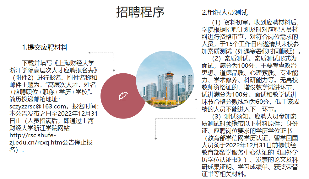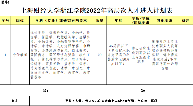 因工作需要,现面向社会公开引进金融类高层次人才若干名,纳入事业编制人员管理。具体岗位、人数和资格条件见《上海财经大学浙江学院学院 2022 年高层次人才引进计划表》(含附件 1:上海财经大学浙江学院学院 2022 年高层次人才引进计划表;附件 2:上海财经大学浙江学院高层次人才应聘报名表)详见链接:https://rsc.shufe-zj.edu.cn/info/1058/1677.htm
