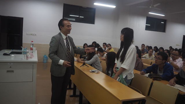 最后,彭教授提出,我们在生活中要做到“面带微笑,频频点头”,以谦逊的态度对人,学院培养人才更要做到以人为本,以德为先,以和为贵。在提问环节中,学生就演讲技能、学习方法、生活态度等方面向彭教授进行提问,彭教授用自己的经验和智慧耐心地解答了同学们的疑惑。