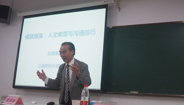 6月7日晚19点30分,我系于6-106举办《人文素质与沟通技巧》讲座。本次讲座由彭嘉强教授主讲,教务长邱风主持。彭嘉强教授是上海财经大学人文学院中文系教授及研究生导师,著名语言修辞学家、教育家、人际沟通专家及演说家。已近杖朝之年的彭教授西装革履,精神气十足。