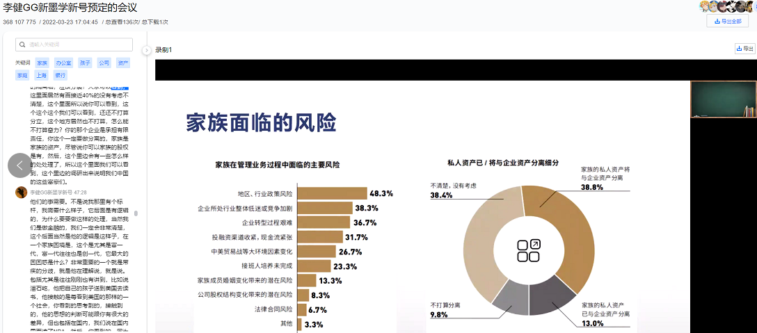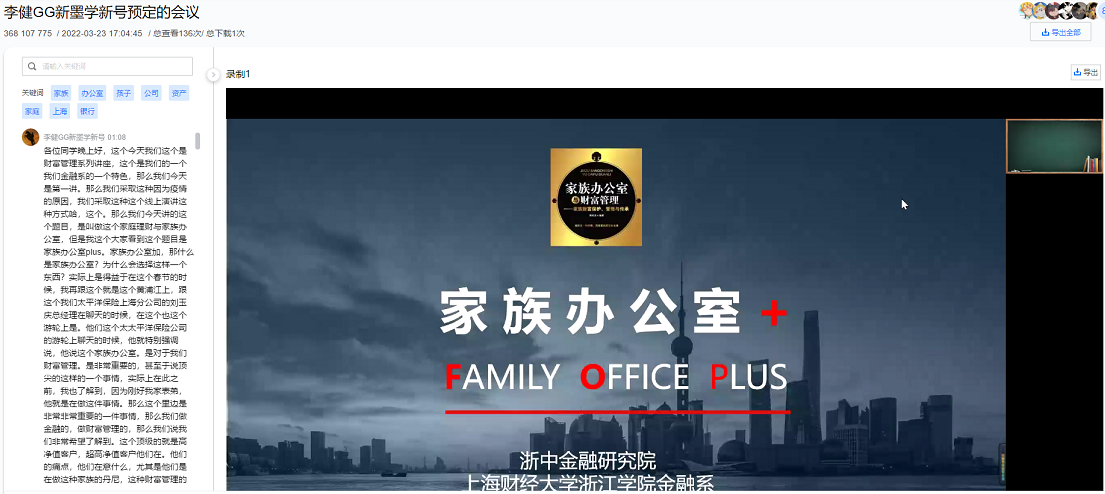 3月23日18时,金融系主任李健老师在腾讯会议以“家庭理财与家族办公室”为主题开始了财富管理讲座的第69讲。