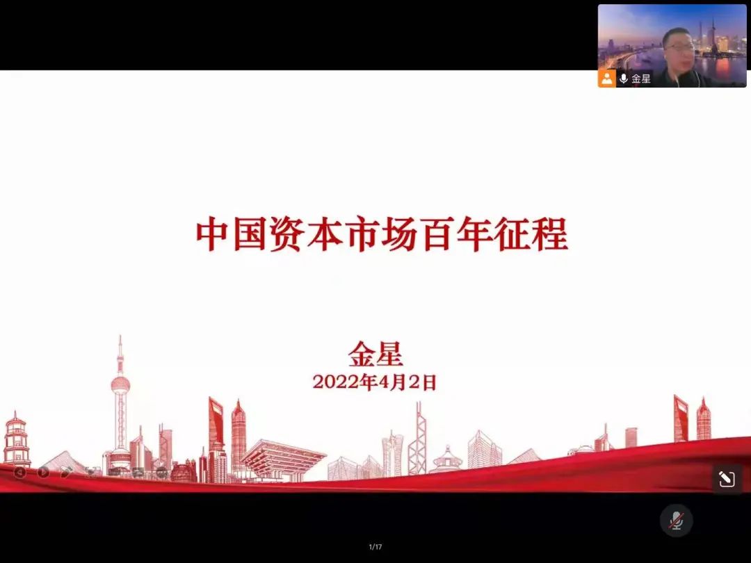 4月3日18:30-21:00,我系在腾讯会议召开了“中国资本市场百年征程”金融讲座。我们有幸请到中国证券博物馆副馆长金星莅临讲解。