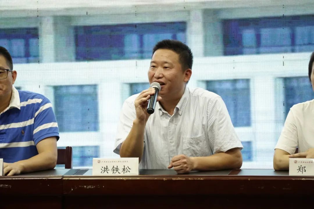 紧接着是金融系系副主任洪铁松老师的发言。他首先以“经济”二字的来历为开端,指明这是来自中国的古典文学,经事济世,让人民过上更幸福的生活。同时也激励我们学习金融学要有远大的理想,作为社会的一份子,个人的发展离不开社会的发展。强调我们需要打好基础,在大学四年,把握自身,抓住机遇,实现逆风翻盘。
