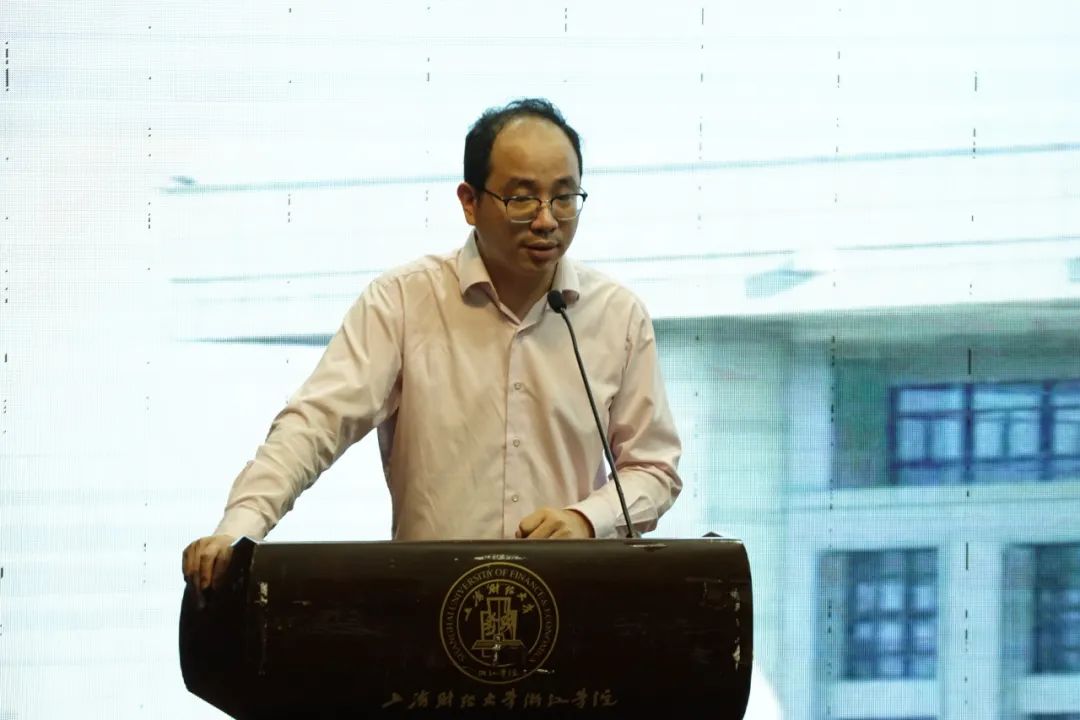 接下来是金融系系主任李健老师的发言,他提出金华作为全国十大最宜居的城市之一,又处于浙中地区,说明了我们学院有着优越的地理条件。他将我们的大学生活比喻为一份四年的契约,步入未来就意味着契约的转换,我们如何在契约中做好风险评估、决定我们人生的道路就显得至关重要。他强调我们需要建立自主学习的思维,需要建立批判性的思维,同时也强调了英语学习的重要性。