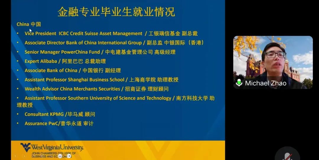 为了帮助同学们进一步明晰自身职业发展规划与未来道路抉择,我系特邀西弗吉尼亚大学的管理与金融助理教授、亚洲商业中心副主任赵老师,于11月21日晚20:30在线上腾讯会议举行金融职业生涯发展暨西弗2+2项目文化宣讲。