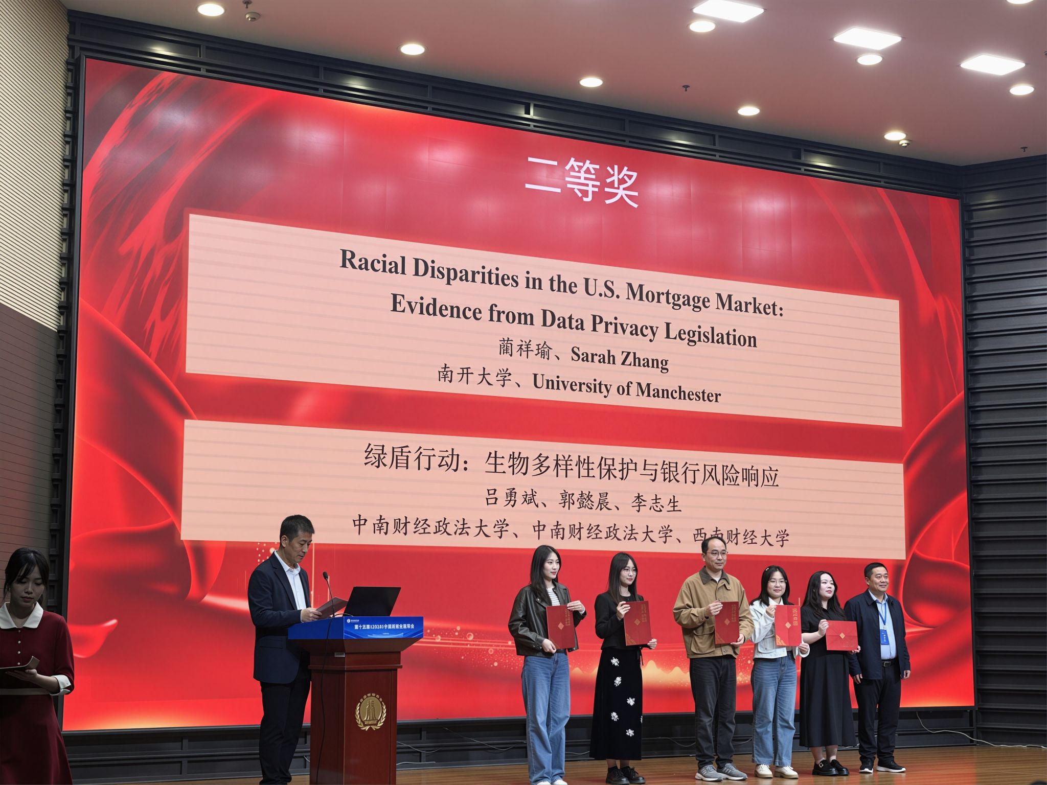 会上,黄哲老师围绕研究成果作专题汇报,与全国学界专家深入交流,充分展现我院教师扎实学术功底与前沿研究视野。此次获奖是我院强化金融学科建设和深耕科研创新取得的又一标志性成果。