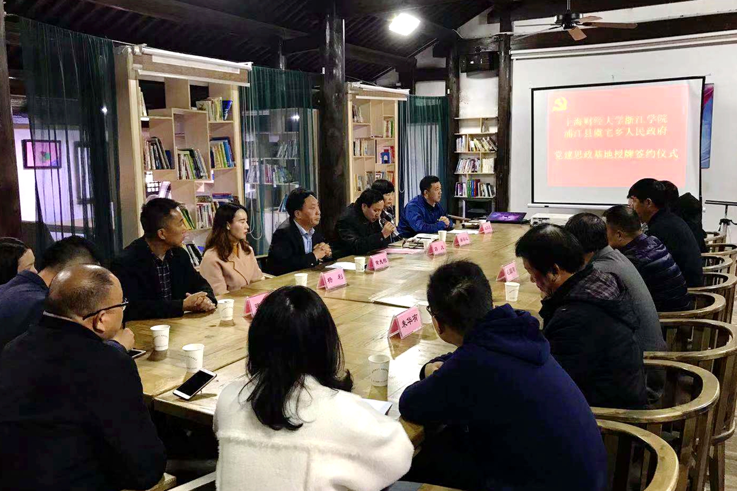 11月29日上午,学院与虞宅乡共建党建思政基签约授牌仪式在新光村润德堂顺利举行。虞宅乡党委书记黄先柏、农办主任张海平,学院副院长邱风,金融系党总支副书记潘海远、金融系老师杨利以及前明、利民、新光、智丰、程丰五个村的主要干部出席本次签约授牌仪式。签约授牌仪式由虞宅乡人大主席王东亮主持。