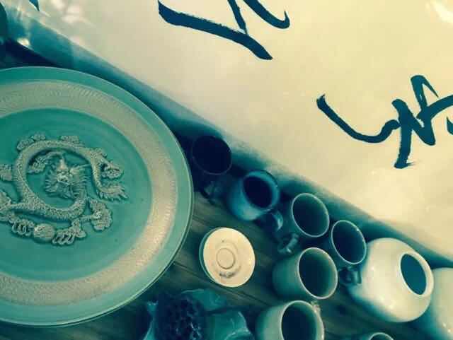 在书画作品展厅内,我们看到了艾青辞世后各界人士用以缅怀的捐赠,如:国家级非物质文化遗产传承人陈新华老师的婺州窑作品,这些艺术品饱含着对艾青先生的怀念之情以及对艾青爱祖国、爱家乡、爱人民情怀的敬仰。