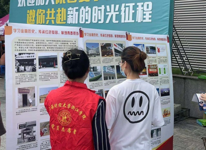 9月11日,在迎接新生学子们的同时,上海财经大学浙江学院金融系党总支开展了一次“红色金融史”宣传展览活动。伟大的中国共产党自诞生之日起,就牢牢把握金融事业发展和前进的方向,指引我国金融业从无到有、由萌芽到壮大,实现了一次次有一次跨越发展。在中国共产党成立100周年之际,上海财经大学浙江学院金融系对金融历史进行梳理,形成了部分红色金融大事记。
