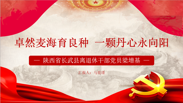 “卓然麦海育良种,一颗丹心永向阳”,马筱璠同志为我们讲述了老党员梁增基的故事。梁增基,陕西省长武县农牧局农业技术推广中心退休干部,是我国著名的旱区小麦育种专家。1961年西北农学院毕业后,他积极响应党中央的号召,扎根长武55年,投身农业科学研究和技术推广,为社会创造财富40亿元以上。“作为一名在育种战线上的老党员,生命不息,就要奋斗不止”,梁增基是这样说的,也是这样做的。他甚至在退休之后仍在坚持着他的事业,为我国农业事业做出巨大的贡献。