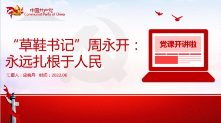 应晓丹同志讲述了“草鞋书记”周永开的故事。新中国成立前,巴州县没有一处水利工程。任职期间,周永开等干部召集三万多民工日夜奋战,他常常步行10余公里到工地,和老百姓一起修水库挑土方,晚上还要连夜开会研究进展,安排工作。工地上,戴着草帽、脚踩草鞋的周永开和民工一个样,满身尘土;下工回来只看见两只眼睛,端起搪瓷缸子就喝。很多人不知道这个穿草鞋的农民,竟然是县委书记。后来,为迎接中共90岁生日,周永开与另外一名同志一起,花费一个月的时间完成了一部长90米、宽7.1米的《共产党宣言》长卷,分别象征中共90岁生日和“七一”建党节。