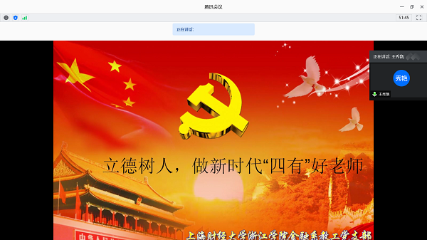 7月7日下午,在庆祝中国共产党成立99周年之际,金融系教工党支部通过腾讯会议平台召开支部会议暨“党员严守规矩和纪律”主题党日活动。会议由组织委员王盛主持,全体党员参会。