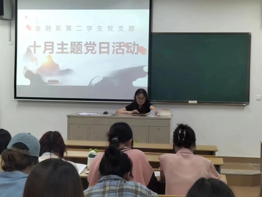 10月23日,金融系第二学生党支部开展了“牢记嘱托 感恩奋进 再创辉煌”十月主题党日活动,本次会议由金融系第二学生党支部书记洪忱姝主持。
