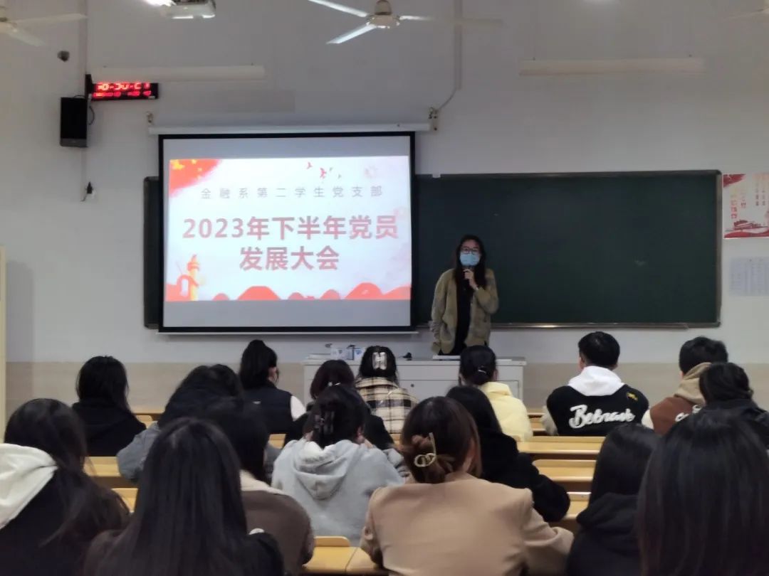 2023年11月13日,金融系第二学生党支部在7-108召开预备党员发展大会。本次会议由金融系第二学生党支部书记洪忱姝主持。