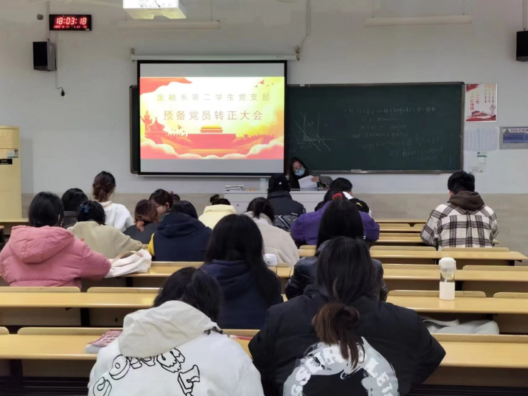 2023年12月11日18:00,金融系第二学生党支部预备党员转正大会在7幢130举行。本次会议由金融系第二学生党支部书记洪忱姝主持。