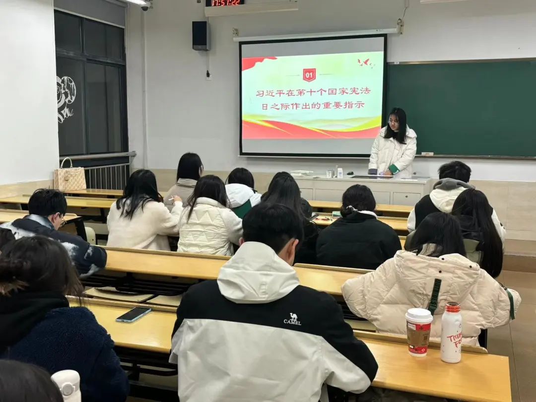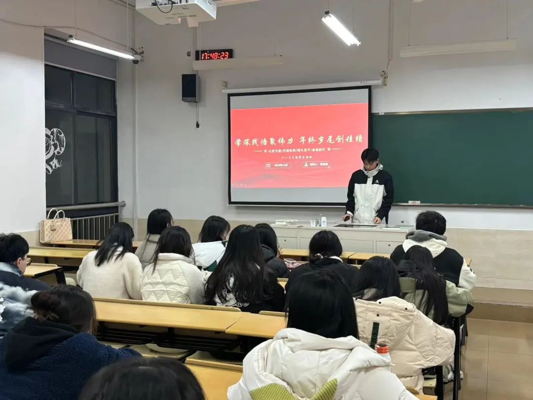 12月18日,金融系第一学生党支部于7-107开展了主题为“学深践悟聚伟力 年终岁尾创佳绩”的十二月主题党日活动,本次会议由章浩楠同志和沈叶欣同志进行领学。