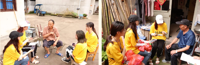 我们选取了70周岁以上的党员同志进行慰问,特别采访了“与共和国同龄”70岁的党员同志,了解他们的故事。老党员们面对实践组的同学面露微笑,眼透慈爱。其中一位叫陈行波的老人在1974年入党,那时的他还是一位二十多岁的有志青年,怀着为人民服务、造福一方百姓的初心,做了十年的村干部。在那期间,带领村民修了八个水坝,建了两个水库,另外还开发茶园种茶树,修水库,为百姓安居乐业贡献自己的力量。同时,他也对新时代充满信心,今后希望在寺前村能进一步发展旅游业,带领村民们致富,将旅游资源开发好,将美丽的风景保护好,将美景宣传出去。