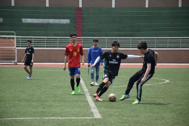 4月25日中午12点半,身着队服的足球运动员们在田径场上开始了一场精彩的足球比赛。