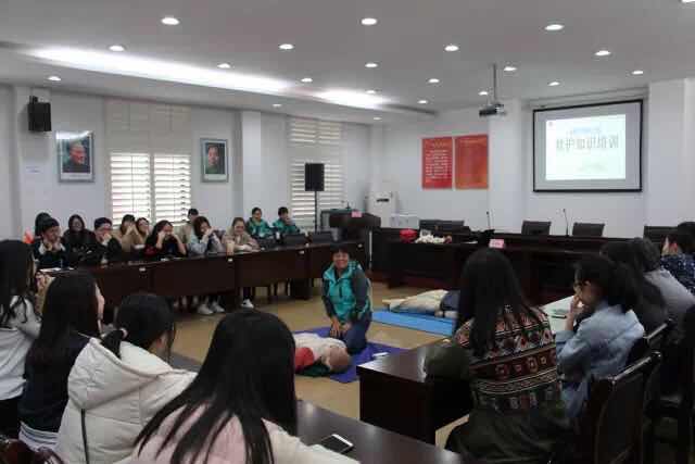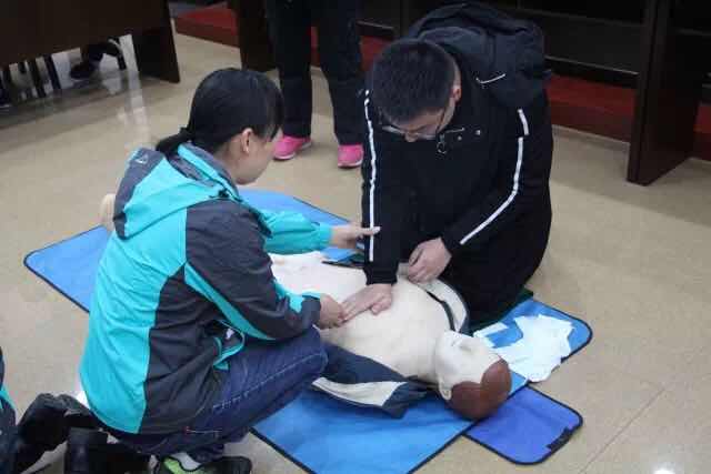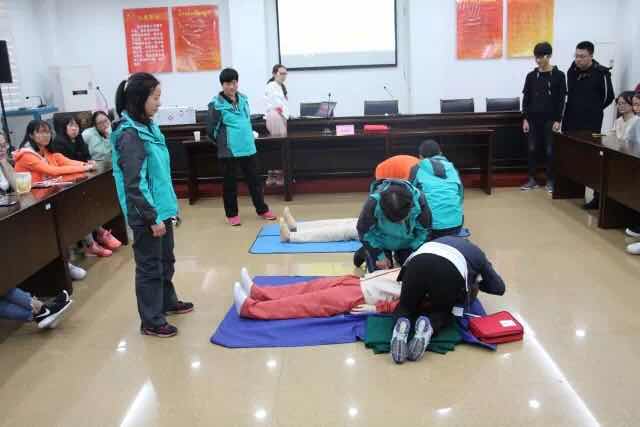 程青梅老师从理论和实际操作两个部分为我们讲解了基础的救护知识。程老师和小脚丫公益基金会的志愿者们模拟急救现场,为我们示范了“救命神器”AED心脏除颤仪的使用方法,以及紧急固定包扎的方法。程老师用生动幽默的语言向同学们讲述了生命链有五个环节,在遇到突发事件时要学会呼救,学会判断,学会正确施救方法。活动最后,在志愿者们的指导下,同学们亲身体验了心肺复苏的操作过程,在操作中实践所学知识。此次讲座生动活泼,气氛融洽。