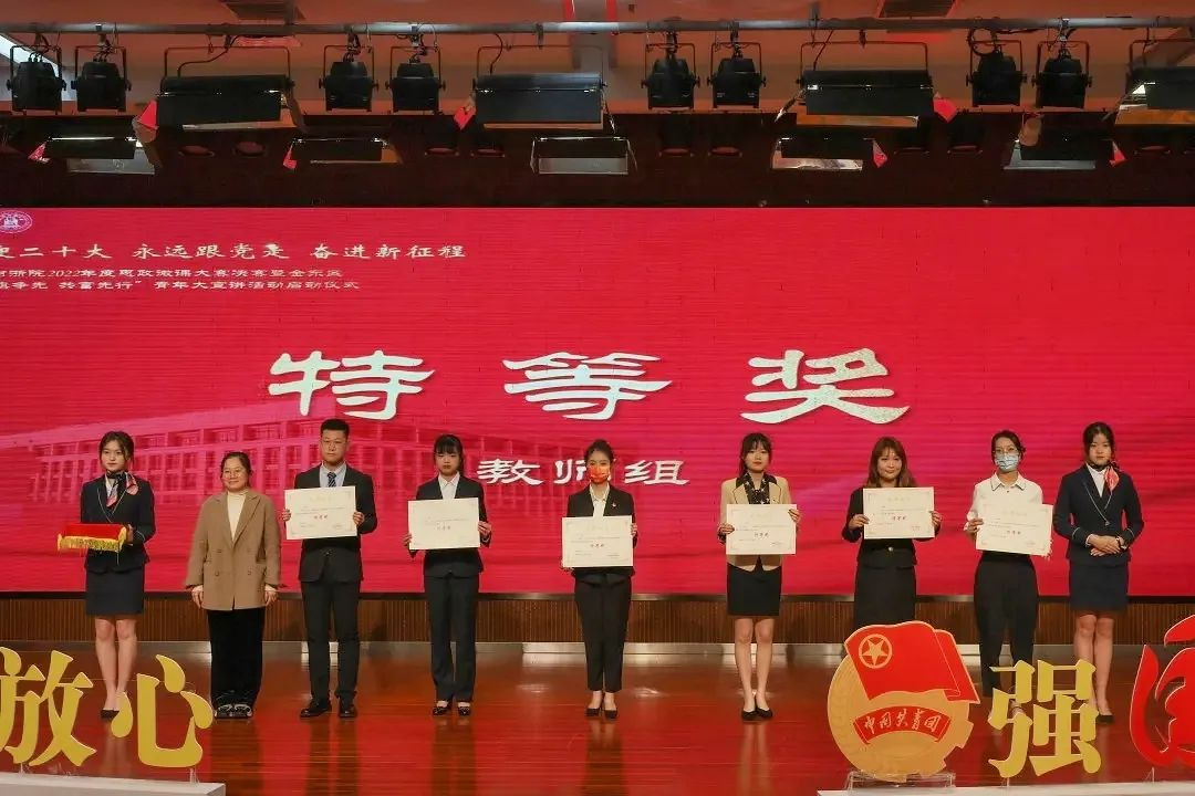讴歌中国共产党人精神谱系,迎接党的二十大胜利召开,书写忠实践行“八八战略”的新篇章,展示奋力打造“重要窗口”的新成果,展示广大青年在新时代新征程中奋勇争先建功立业的风采。2022年度学院思政微课大赛于3月31日在图书馆报告厅举行。