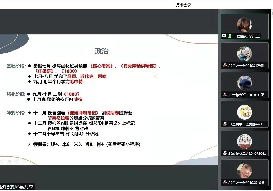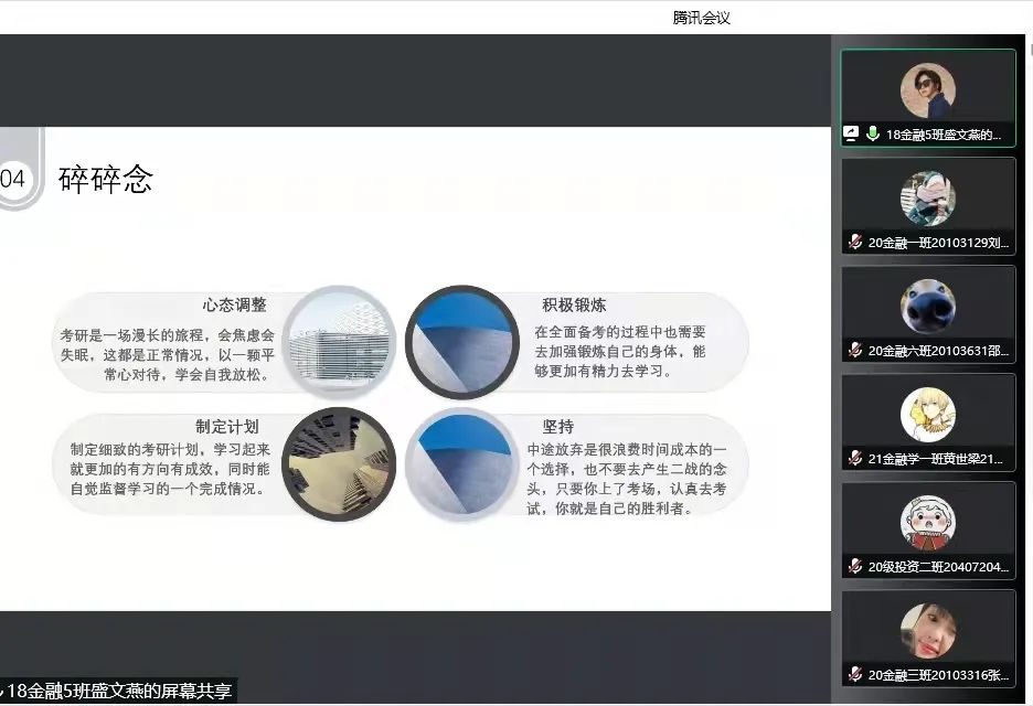 5月5日18:30—19:30,我系在腾讯会议举办了第二期“考研优秀学子分享会”,有幸请到了18金融学五班的盛文燕学姐和王欣怡学姐来给大家分享他们的经验。