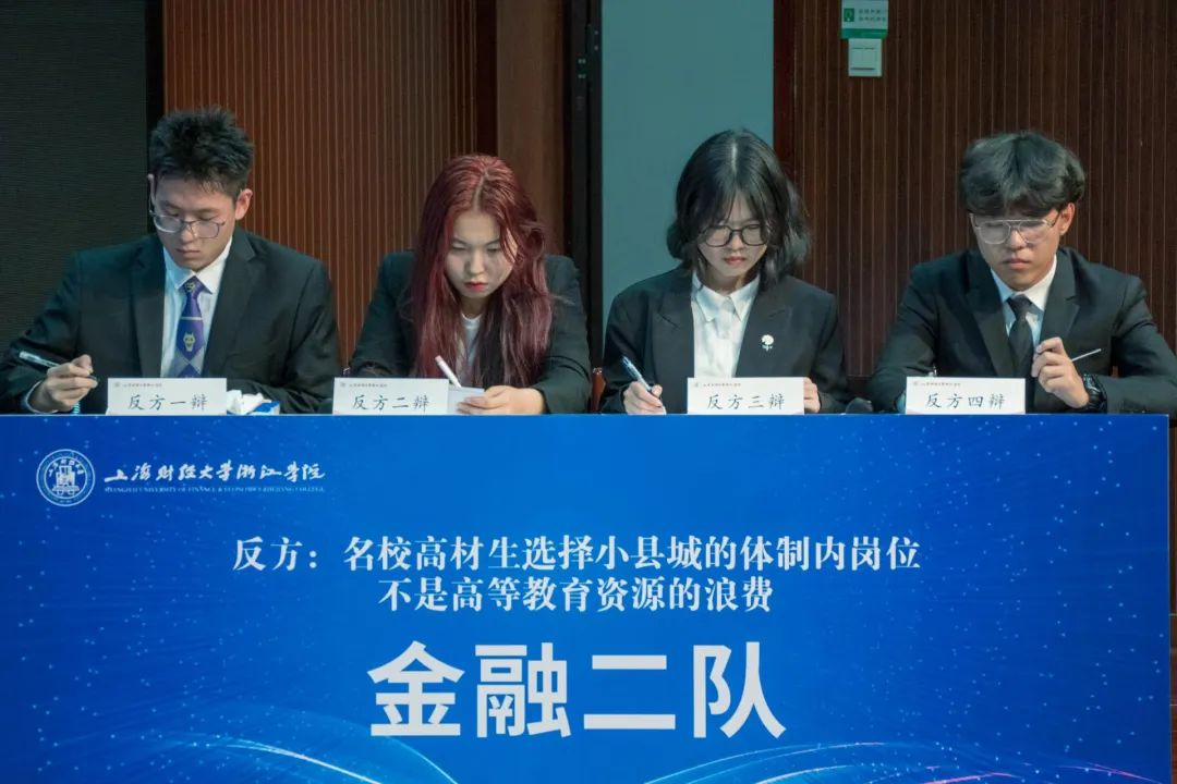 万众瞩目的冠亚之争在正方工管三队与反方金融二队之间展开,两队就“名校高材生选择小县城的体制内岗位是不是高等教育资源的浪费”展开深度辩论。