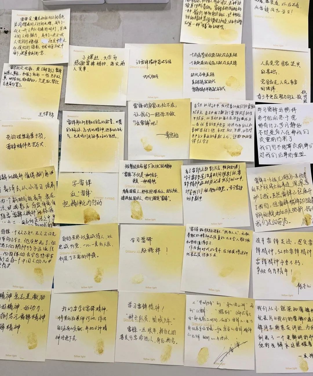 观影结束后,我们下发了便利贴,让大家在便签纸上写下自己的观影感受,并依次按下自己的“金”手印。