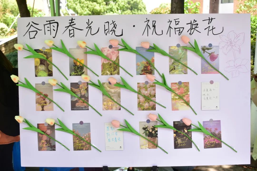 其二,同学们在明信片上写下对谷雨的诚挚祝福或自己对未来的期待,换取信封旁的永生花,共同祝愿谷雨新闻工作室的春天永不凋零,连同永生花那般永恒而又绚烂!