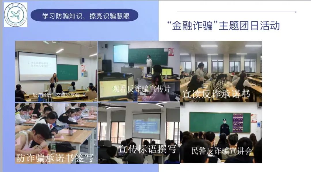 获奖项目以金融反诈为主题,围绕四个方面,项目背景、成果展示、项目创新、未来展望进行展示。项目以一个目标、两个平台、三方合作、四个特性为特点,展现了该卓越的实行效果和未来深入发展的无限可能。校园金盾防诈骗,青鸟相伴护远航,青鸟识诈志愿服务队将继续用校园金盾守护好学生们的“钱袋子”,筑牢校园安全“防护墙”。