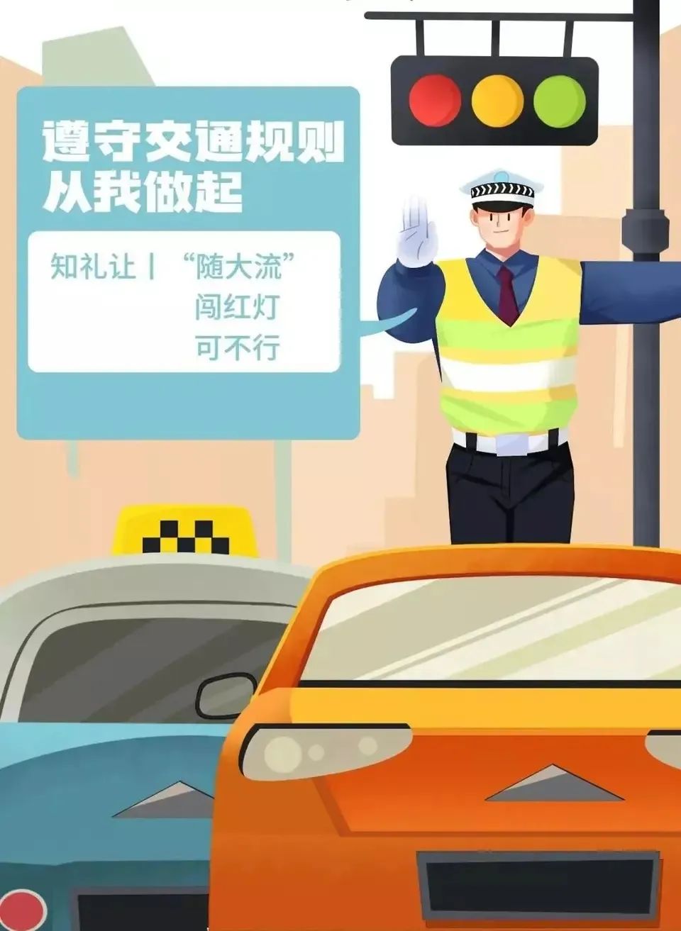 1. 遵守交通法规,不闯红灯、不翻越隔离栏。