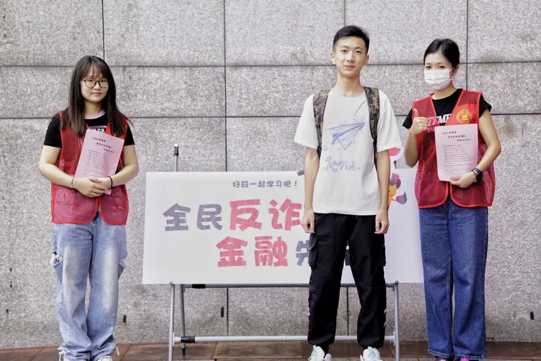 我们的金融系同学积极响应号召,自愿成为了反诈宣传活动的志愿者。他们不仅热情地参与活动的策划和准备工作,还在迎新点亲自到场,帮助同学们了解如何防范诈骗。