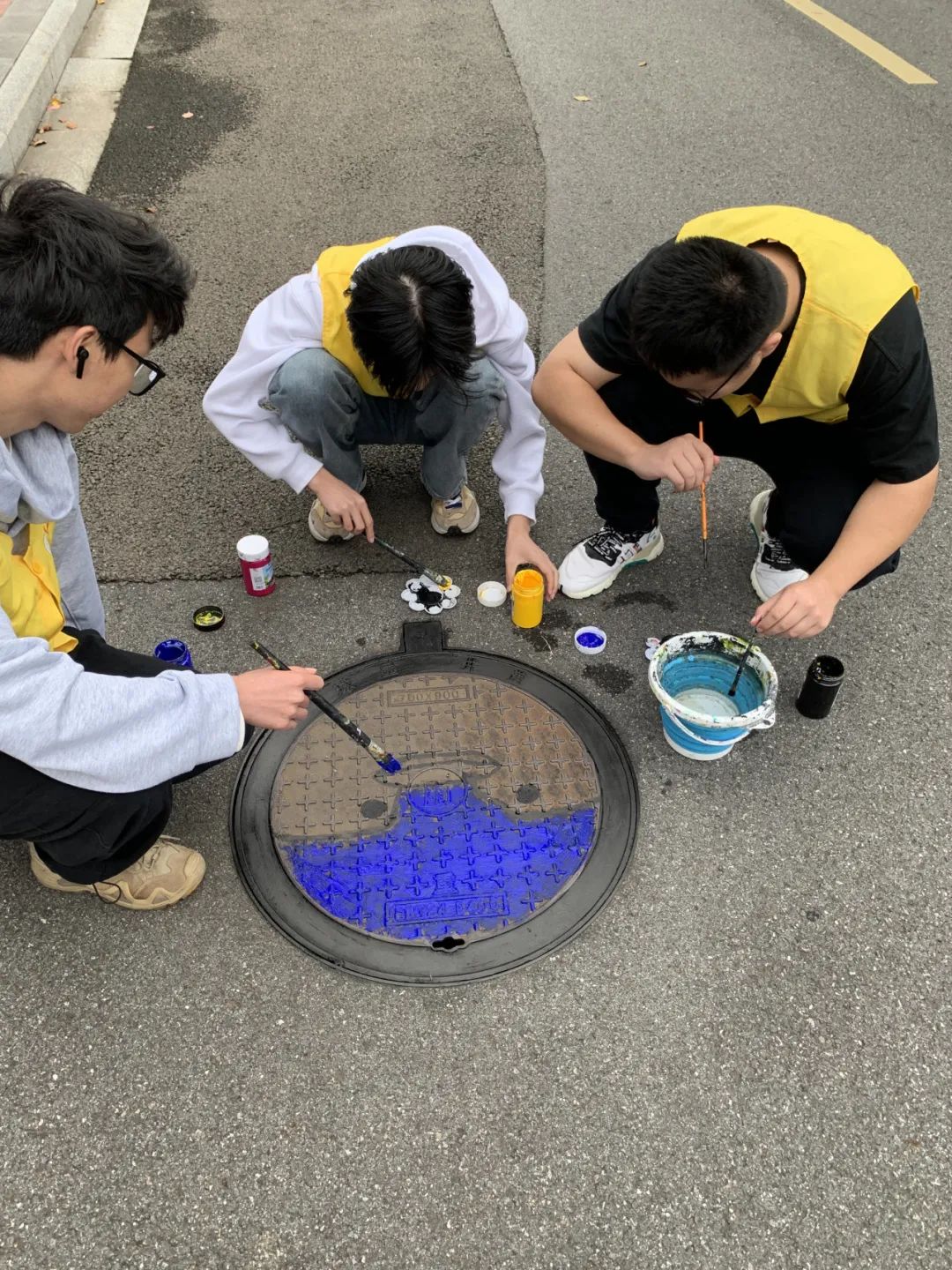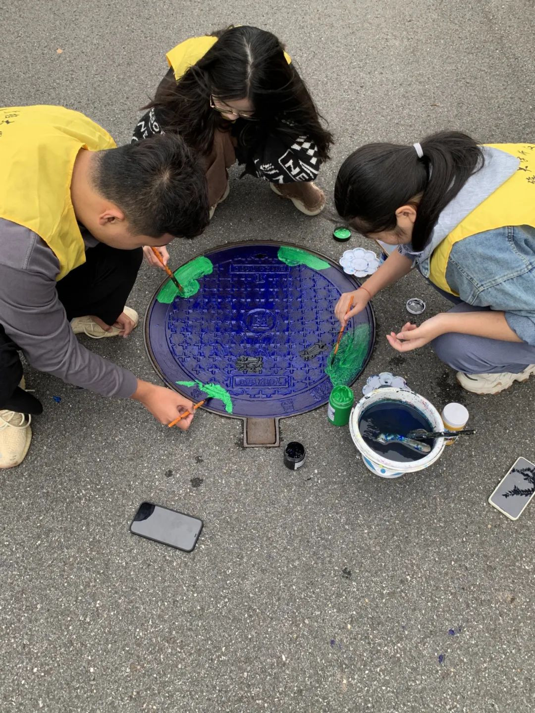 在群星璀璨的茫茫宇宙之中,地球是我们唯一的家园。志愿者们笔下春风,浩瀚无际的海洋,万木竞秀的森林便跃然“井”上。除此之外,他们还为地球画上一双炯炯有神的眼睛,更增添了几分可爱俏皮。