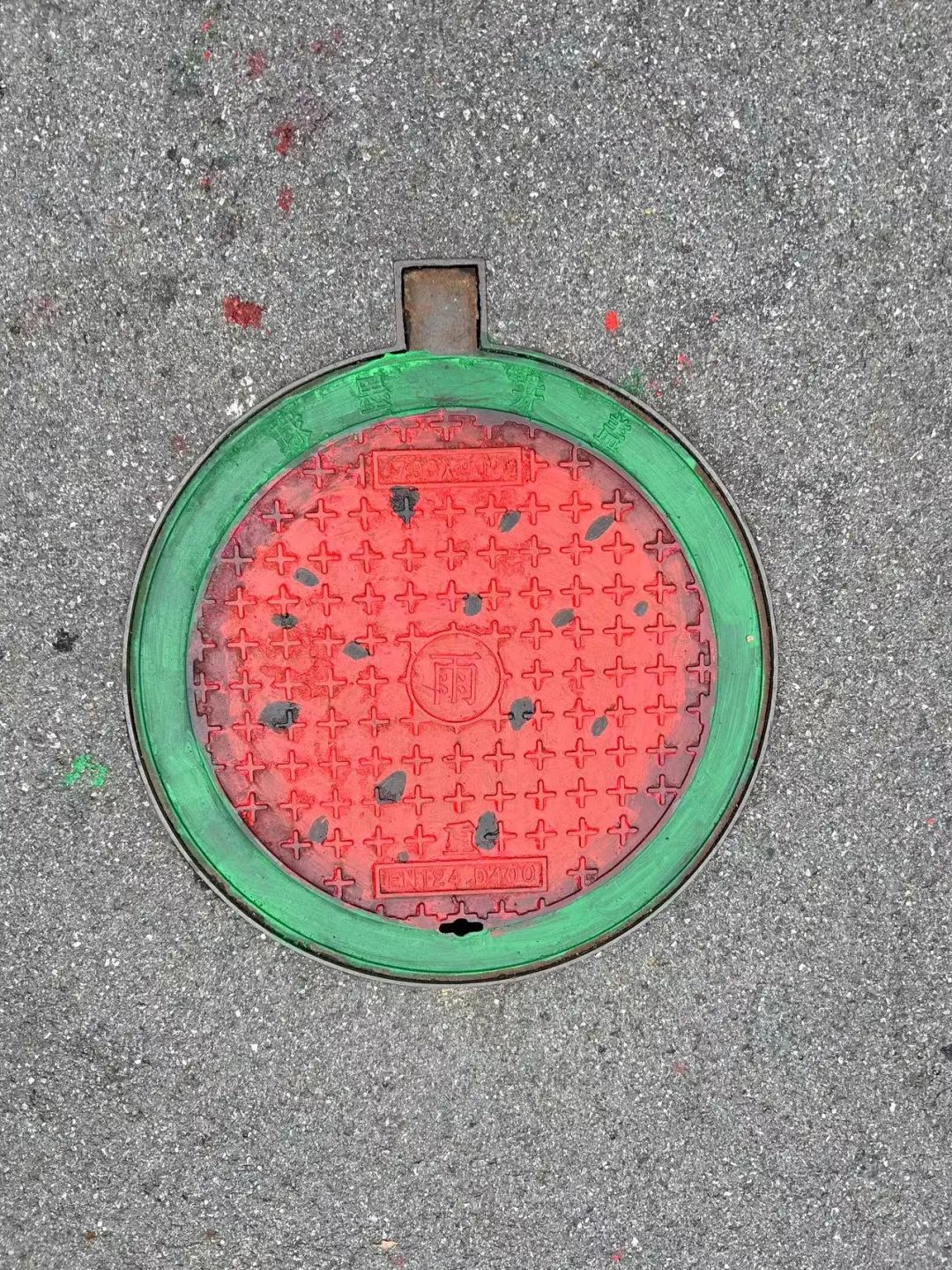 盛夏的回忆总是令人刊心刻骨,志愿者们抓住夏天的尾巴,书写出独属盛夏的甜蜜。红黑相间的瓜瓤,令人垂涎欲滴,不禁百感交集大自然的馈赠。青年志愿者所秉持的齐心协力,也在这小小的井盖上展现的淋漓尽致。