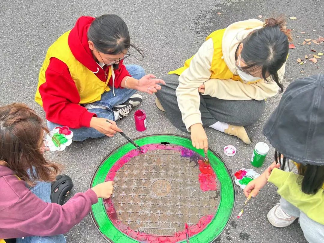 一层秋雨一层凉,秋雨绵绵秋意长。人们都在嗔怪天气的多变,相互叮嘱着关上门窗,但青年志愿者们没有决定在屋中享受温暖和舒适,他们挽起袖子,拿起画笔,别出心裁地描绘着心中的愿“井”,为校园增添一处世外桃源。