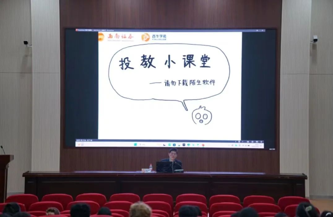 为加强同学们对金融诈骗的防范意识,提高对金融犯罪的警惕性,我校有幸邀请到了西南证券金华八一南街营业部的首席投资顾问王敏老师于10月25日晚间18:40-20:40开展以“打击金融反诈,共筑校园反诈防线”为主题的金融反诈宣讲会。