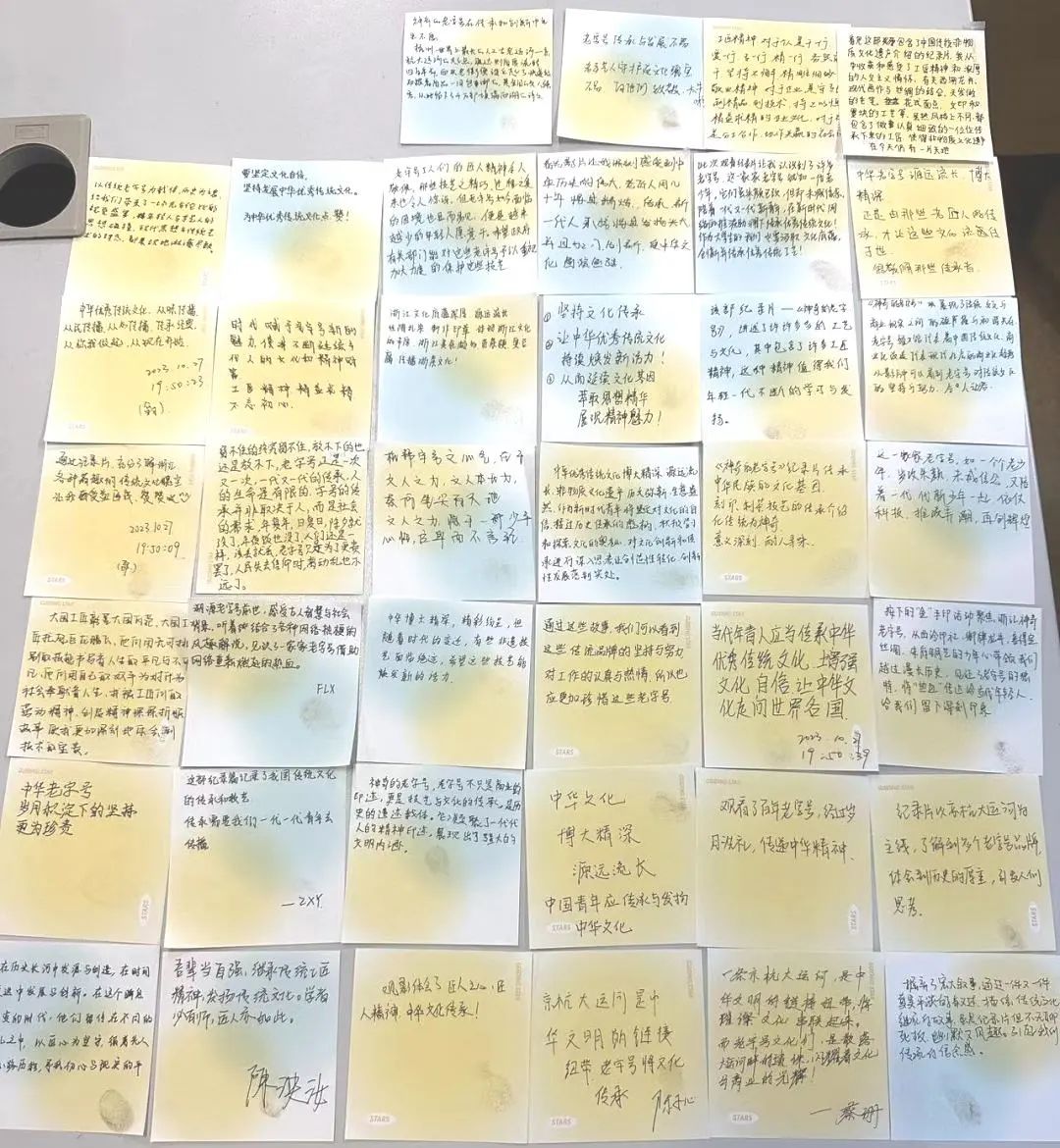 影片结束后,我们为同学们发放了便签纸和笔,让大家在便签纸上写下自己的观影感受,并依次按下自己的“金”手印。