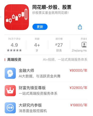 3.同花顺手抄App用户数位列市场第一,且遥遥领先。