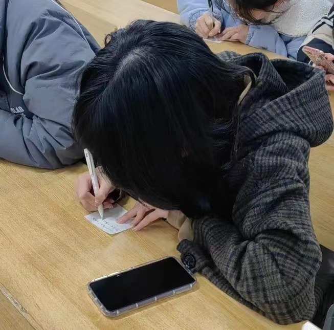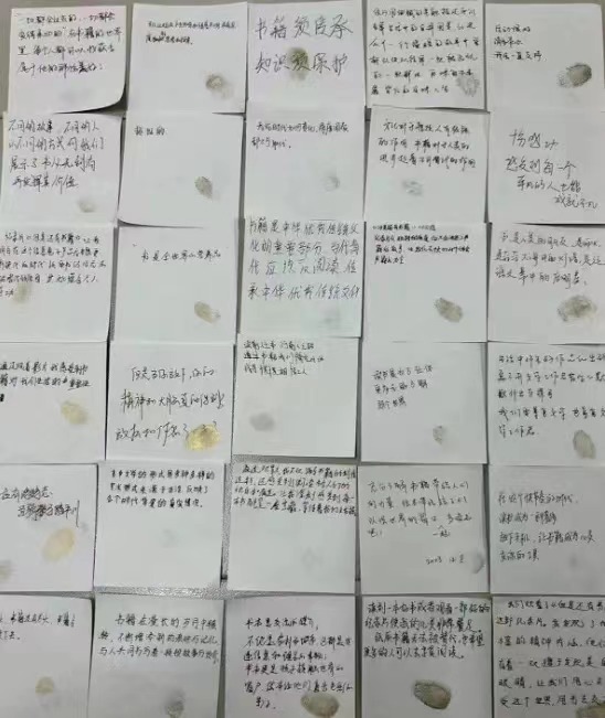 影片结束后,我们为同学们发放了便签纸和笔,让大家在便签纸上写下自己的观影感受,并依次按下自己的“金”手印。