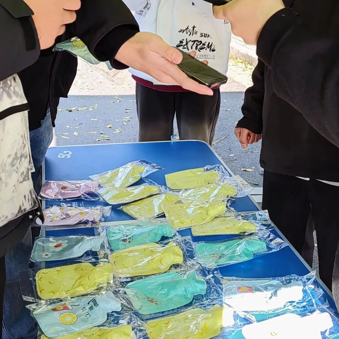 五彩斑斓的暖手袋暖的不只有手,还有各位学子的心。