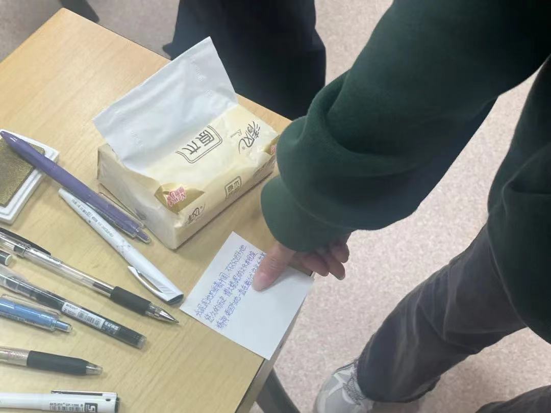 观影结束后,我们为同学们发放了便签纸和笔,让大家在纸上写下自己的观影感受,并依次按下自己的“金”手印。