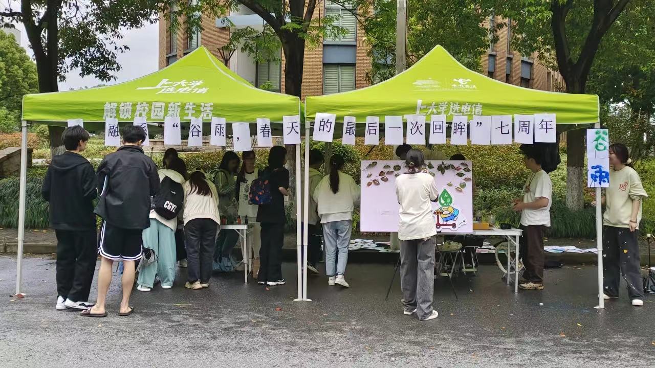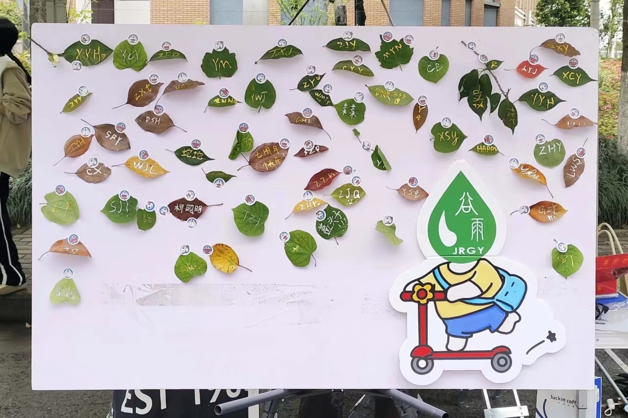 其二,同学们挑选独特的落叶并书写下自己的名字,并粘到展板上,来换取谷雨“春日券”,共同播种下象征新生的种子,落地生根,发芽。连同绵绵春雨,由衷地祝愿谷雨新闻工作室向阳而生,灼灼芳华!