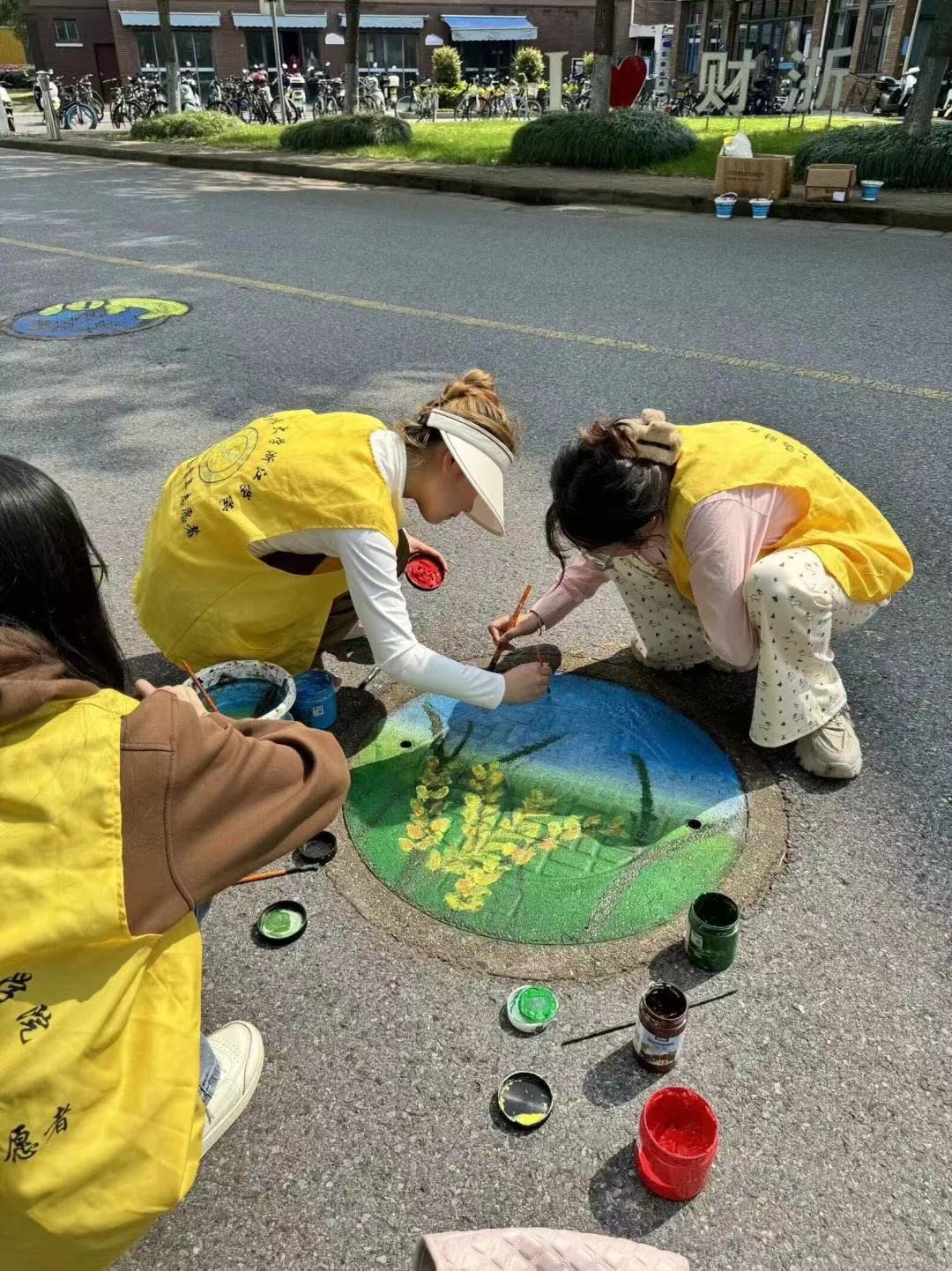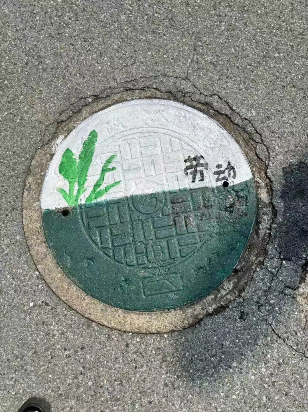 劳动的音乐奏响在世间每一个角落,用心聆听,倾心享受,顺心而动。在这劳动节的前夕,井盖上对劳动的美好诠释与志愿者们绘画时的辛勤身影交织在一起,图案和行动互相印证,劳动的魅力仿佛跃然于心。四月的春风终将化为五月的繁花,起笔五一,拥抱劳动,愿大家都能在自己的汗水中生根发芽,茁壮成长。