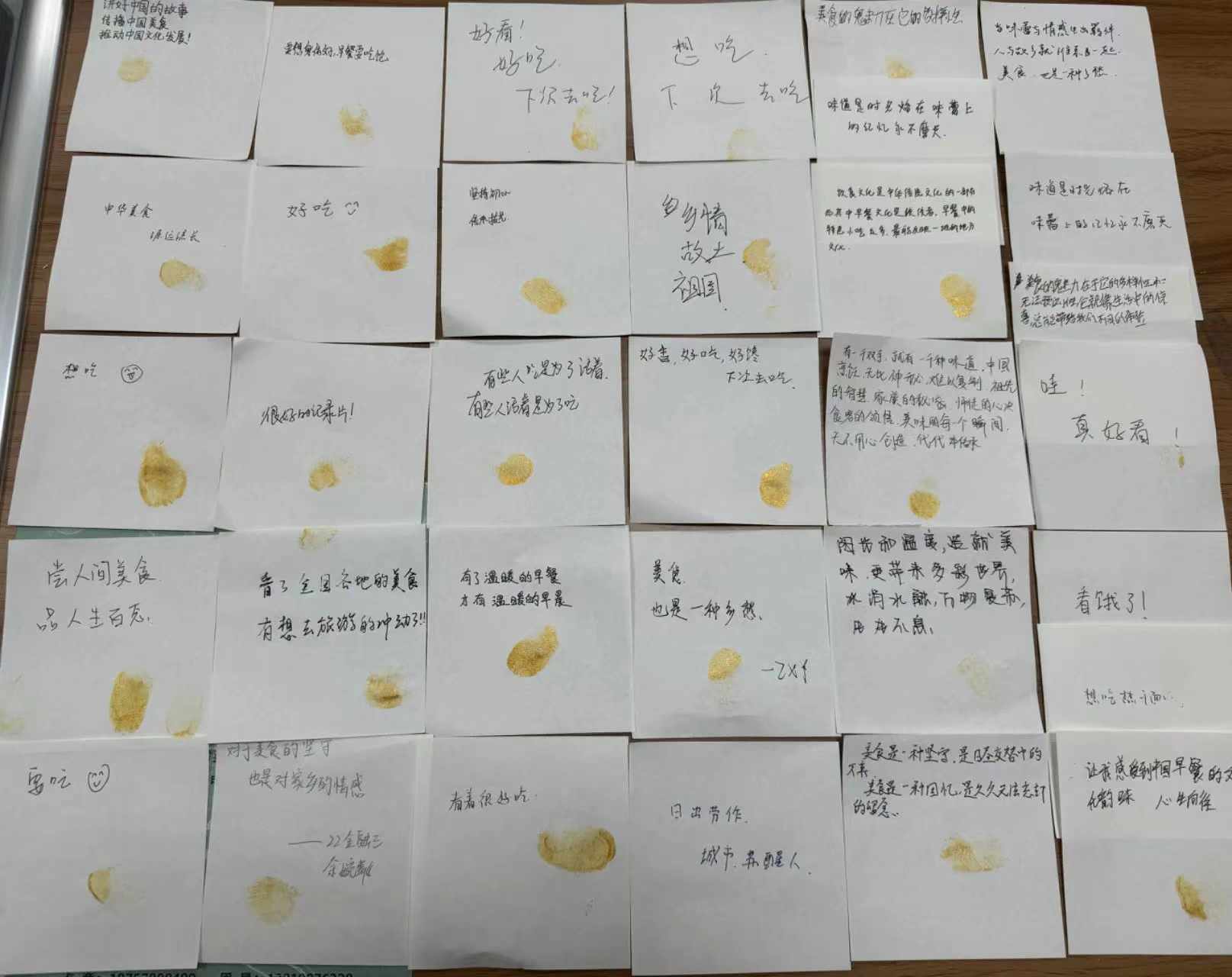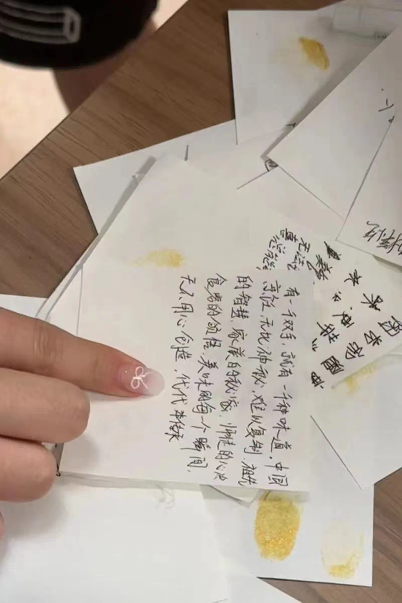 观影结束后,我们为同学们发放了便签纸和笔,让大家在纸上写下自己的观影感受,并依次按下自己的“金”手印。