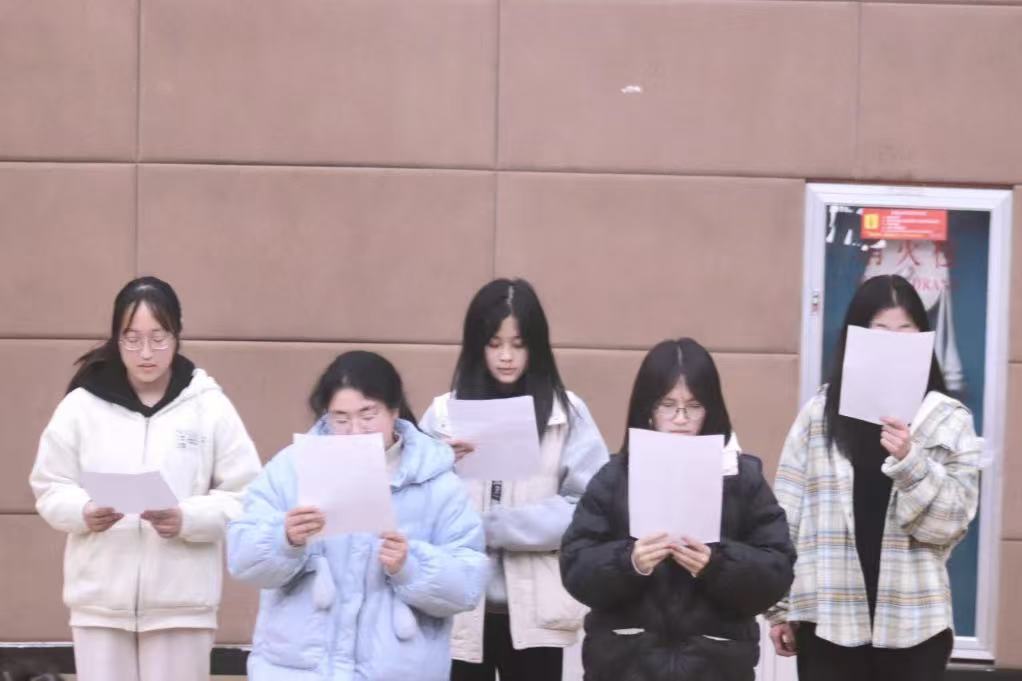 第十三组带来的篇目是《复兴路上的青春告白》,宛如一首激昂奋进的青春战歌,传递出对先辈奋斗历程的礼赞,传承火炬的坚定信念以及对时代担当的热血呼喊,以其深邃的内涵,磅礴的情感与独特的艺术表达,在朗读的舞台上熠熠生辉。