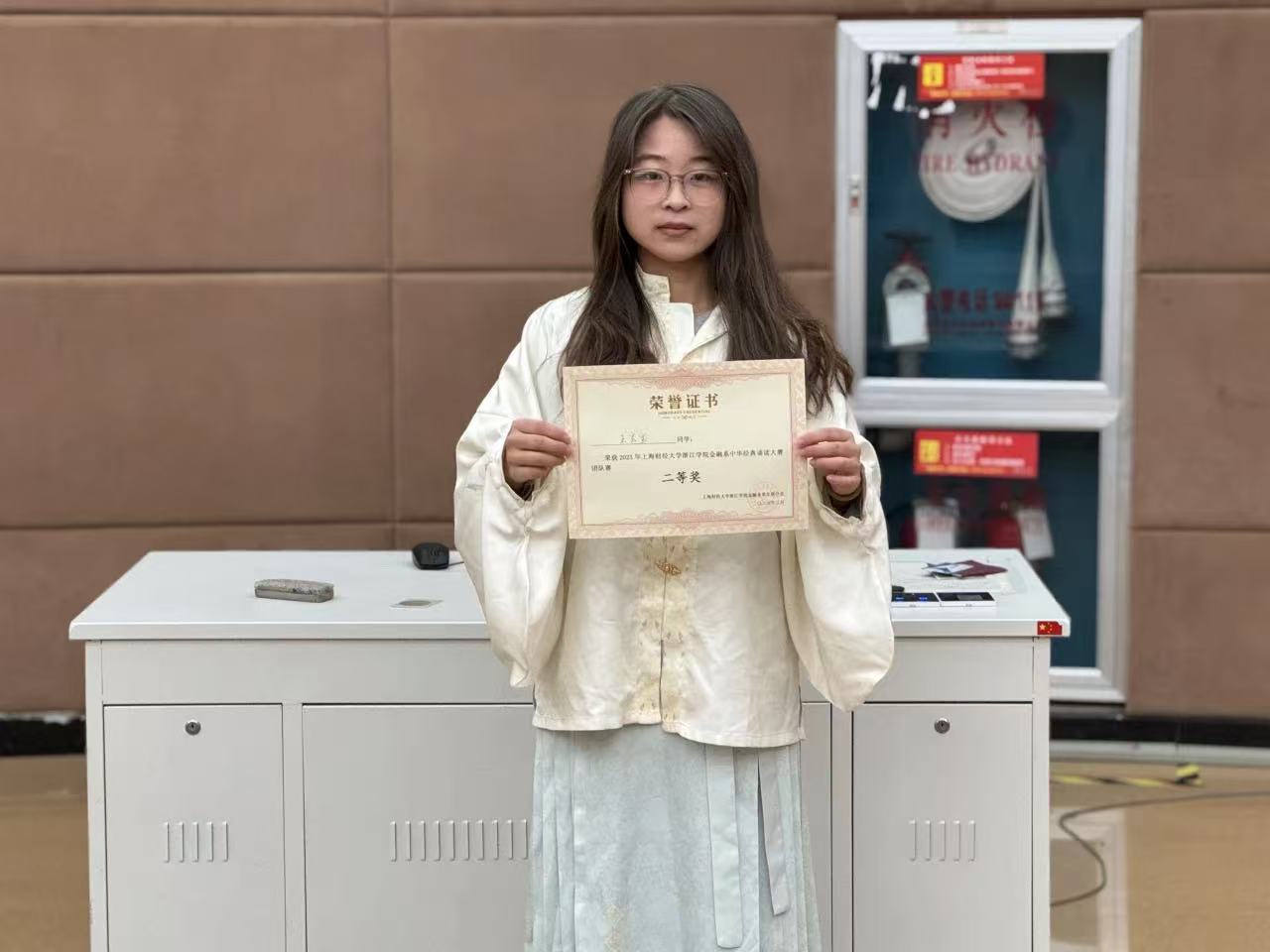 二号选手吴若琦带来的是《生如夏花 死如秋林》在她的诵读下热烈绽放与蓬勃生命力以及从容淡然与生命圆满呼之欲出,散发其独特魅力。备稿带来的《幸福》对幸福的感知层层递进,引导大家一同思索幸福的真谛。