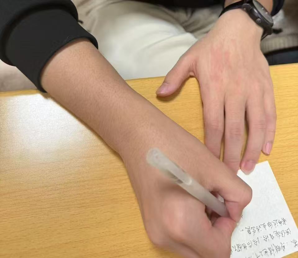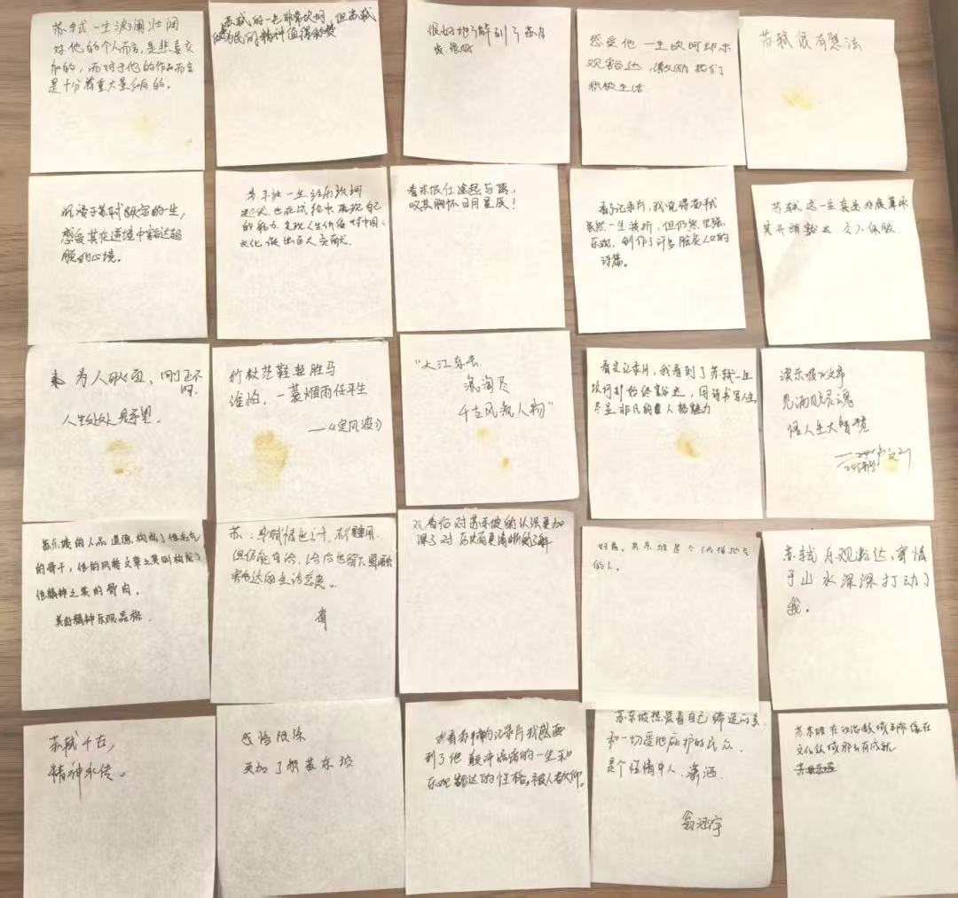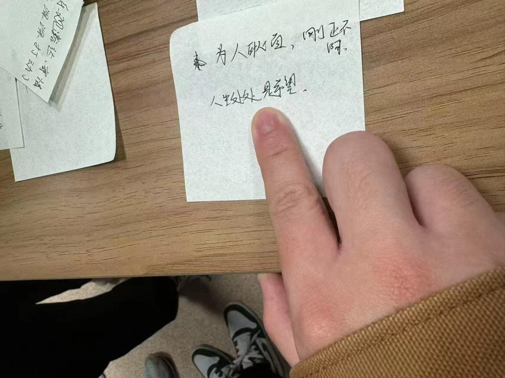 纪录片结束后,我们为同学们发放便签纸和笔,让大家在便签纸上写下自己的观影感受,并依次按下自己的“金”手印。