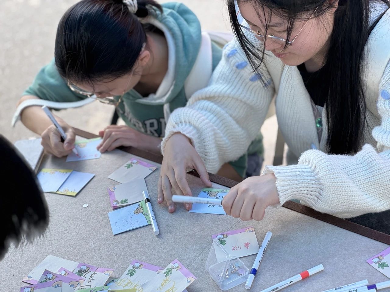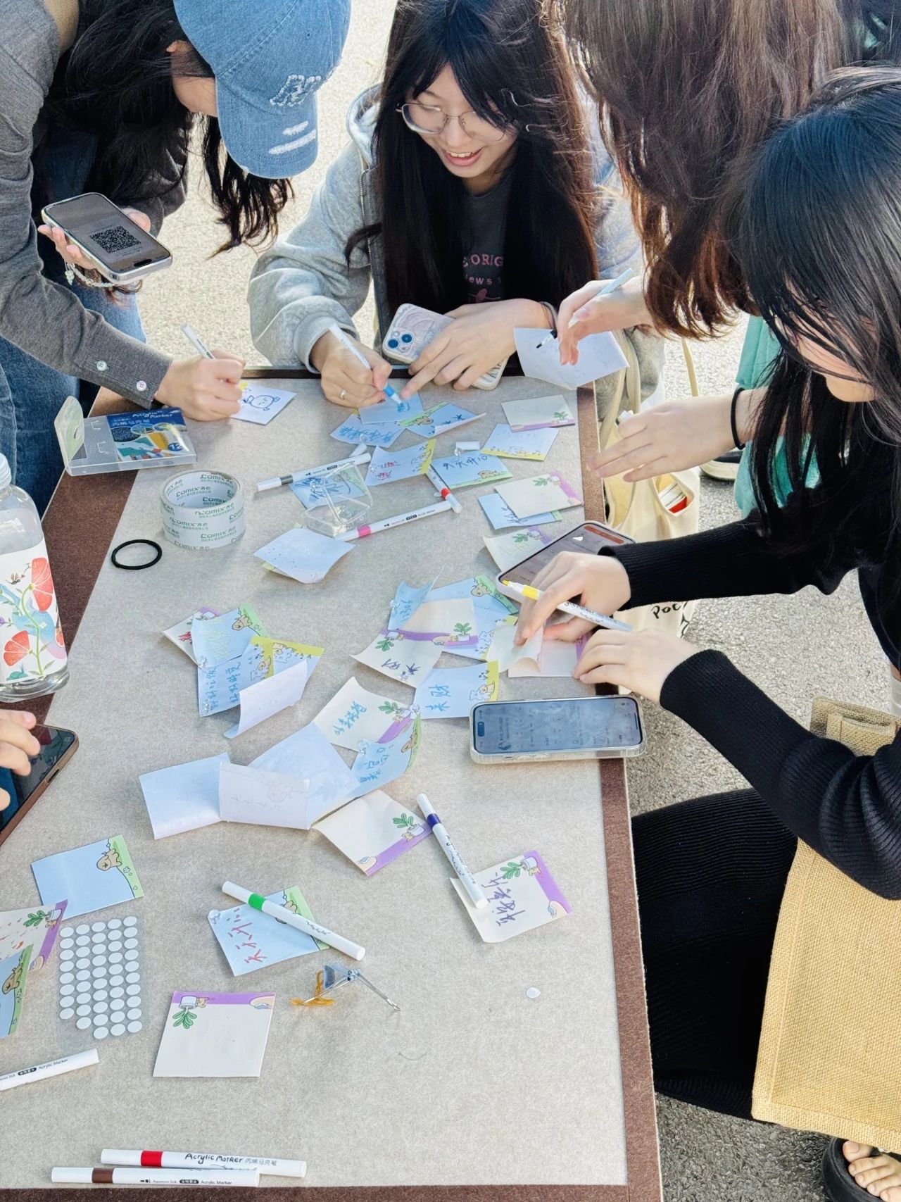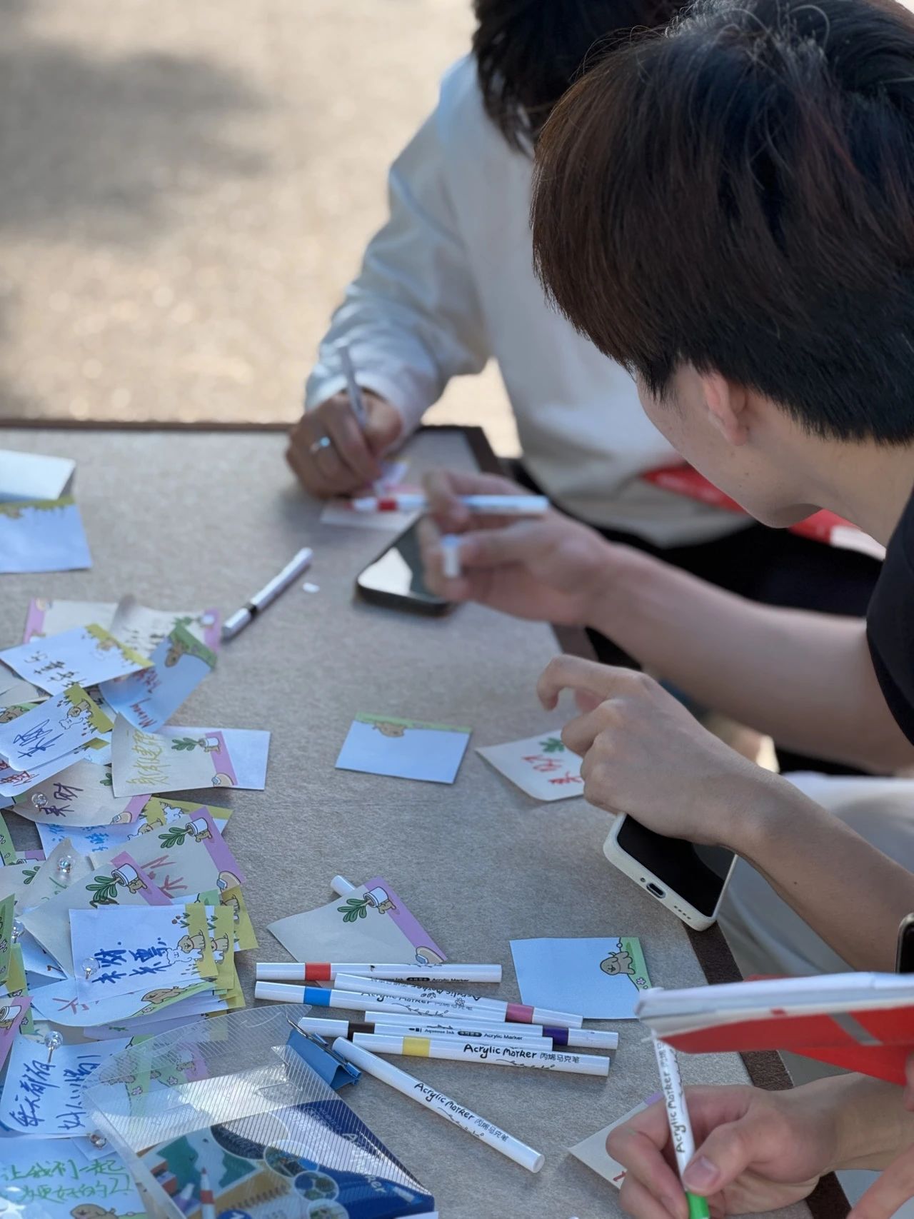 书写心愿在炎炎夏日里,摊位前围满了同学,大家纷纷驻足,精心挑选着各式各样的便利贴,选出心仪的那一张,书写着自己的心愿,字里行间,充满着对未来的无限憧憬与炽热希望。写下的字符遒劲有力,仿佛是敲响的战鼓,激励着我们无畏前行,向着梦想勇敢迈进。