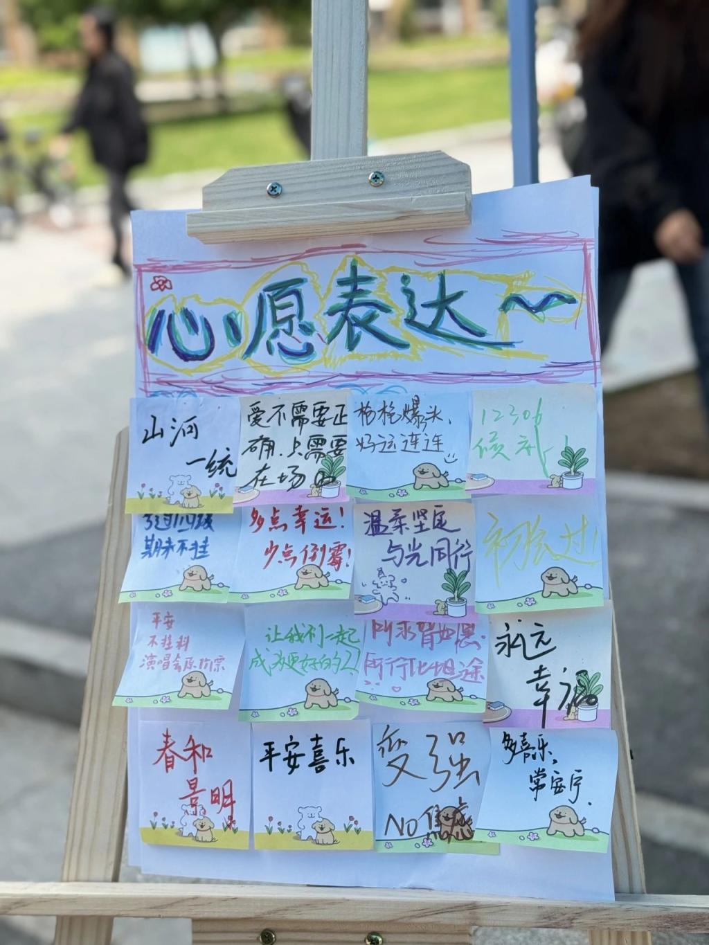 由金融系青年发展部举办的“心愿表达,一墙心愿”主题活动于4月28日在学校主干道顺利开展。